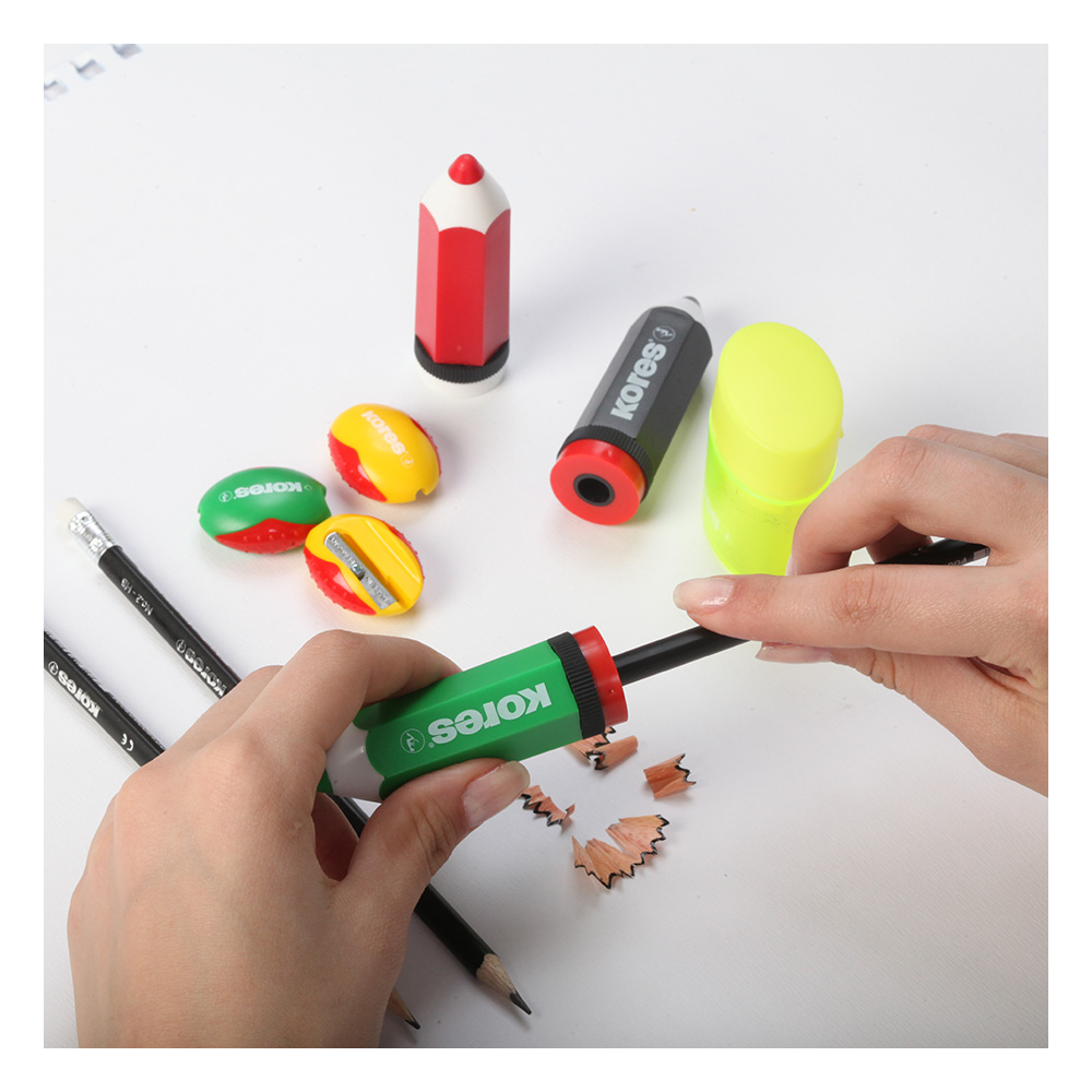 1,66 € (3.25 лв.)Характеристики Материал: Пластмаса Контейнер: Да Двойна острилка Kores Migoo Двойна острилка подходяща за всички стандартни тънки и дебели моливи. Изработена от здрава пластмаса. С контейнер за отпадъци. Лесно заточване и дълъг живот. Цвят: асорти 20 броя в кутия Цената е за 1бр