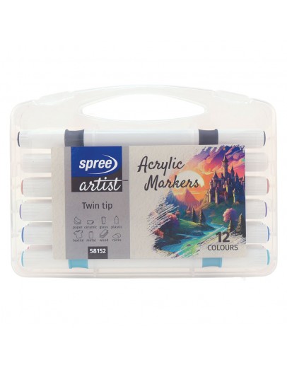 Маркери акрилни двувърхи Soft Brush / Fine tip, 12 цвята в PP кутия