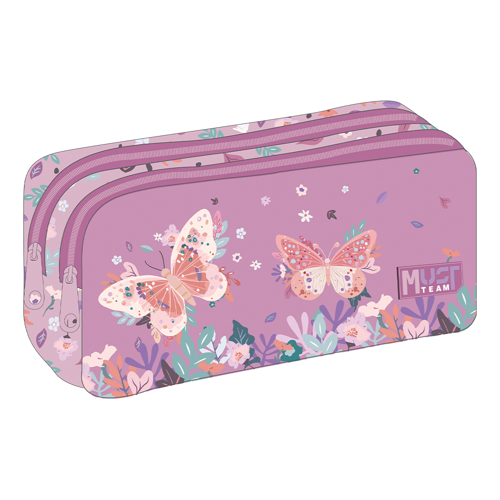 Несесер с три ципа Butterflies Lilac, 21/6/9см.