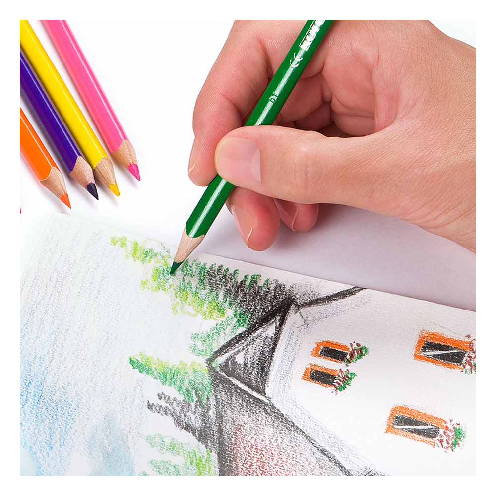 1,72 € (3.36 лв.)Триъгълни цветни моливи с мек графит. Интензивни, наситени цветове. Изключителна здравина на графита против счупване. Изработени от висококачествена дървесина. Лесно подостряне. 12 цвята.